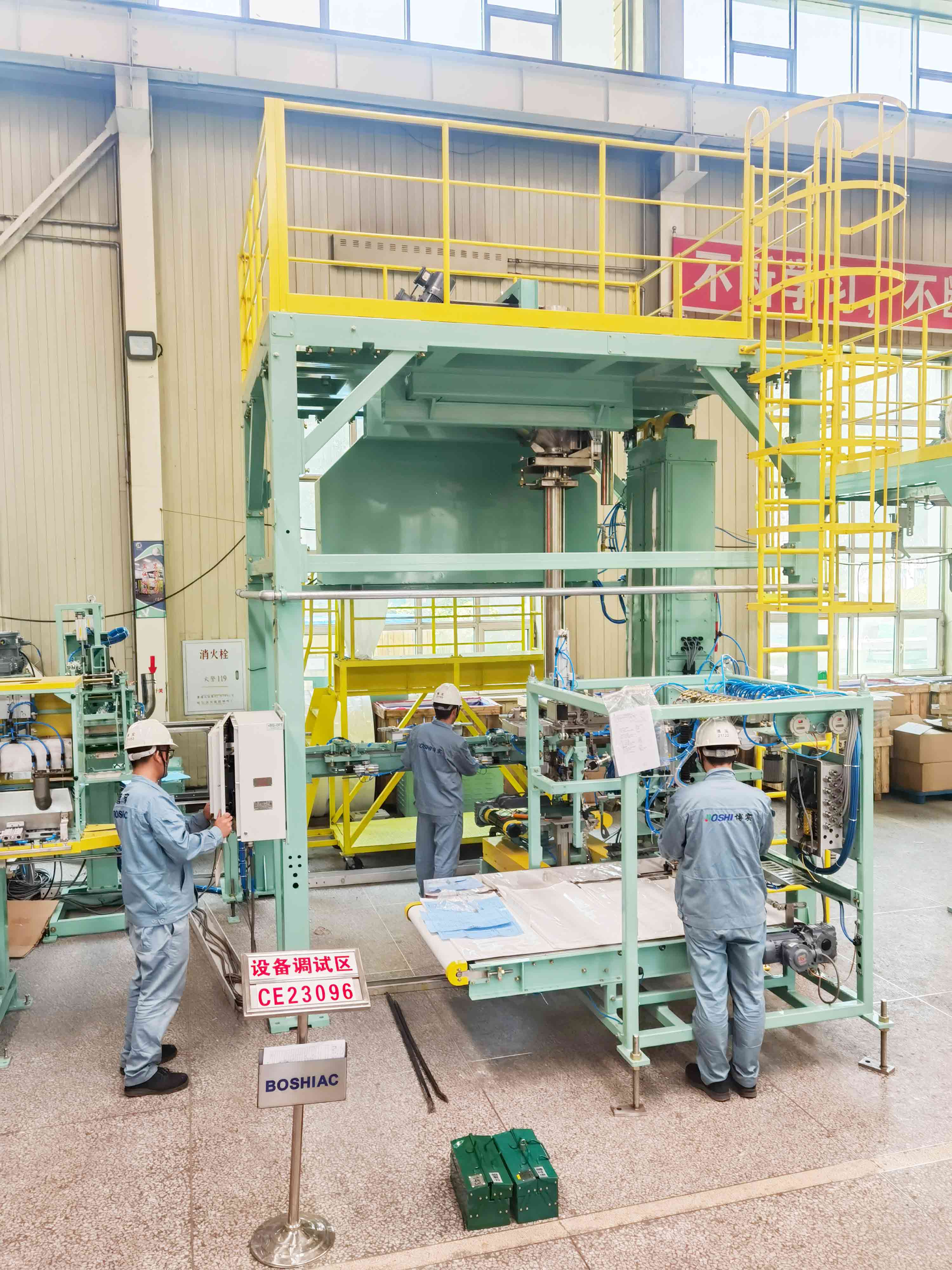 夜色漸濃,城市的萬家燈火漸弱,生產安裝部博通車間卻燈火通明,項目指揮和交流時員工的話語聲,設備調試發出的轟鳴聲,使用電動工具的馬達聲,吊裝行運的鳴笛聲,各種聲音交織在一起,形成了一片“大干快上”的奇妙樂章,這樣熱火朝天的景象,讓微涼的初秋夜晚也隨之升溫。