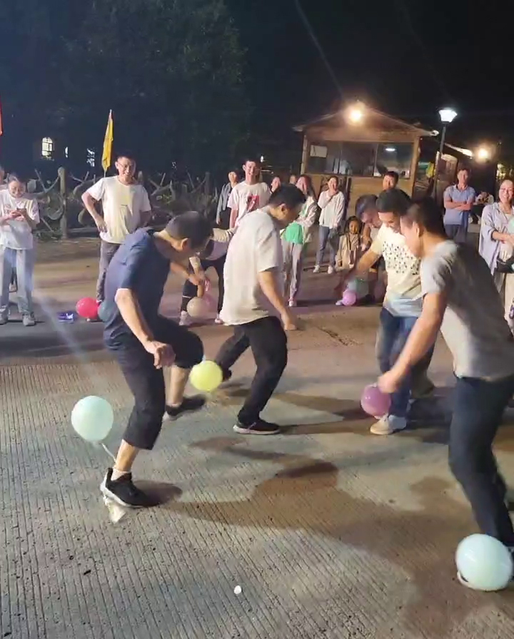 揮別一天的疲憊,酒足飯飽后,夜幕降臨,組織者提前將場地布置完畢,豐厚的獎(jiǎng)品也被放置在舞臺(tái)旁邊。待所有人聚集到了篝火廣場上,隨著主持人一聲預(yù)備、開始,團(tuán)建游戲一觸即發(fā)。場上你追我趕,場下吶喊助威,玩得不亦樂乎,更有感興趣的小朋友們也加入了“戰(zhàn)斗”。勝利者拿著現(xiàn)場發(fā)放的獎(jiǎng)品,場內(nèi)的氣氛被推向了高潮。
