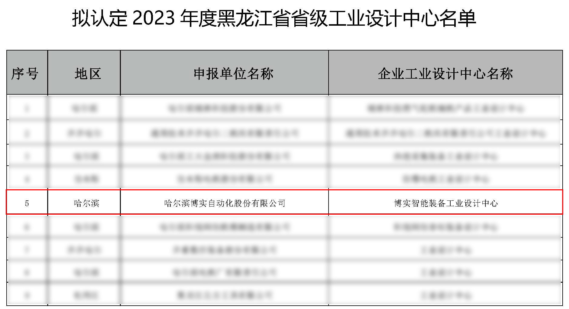 為深入貫徹落實《黑龍江省創意設計產業發展專項規劃(2022-2030年)》(黑政發〔2022〕8號),根據《黑龍江省工業和信息化廳關于印發黑龍江省省級工業設計中心認定管理辦法》(黑工信政法規〔2023〕7號)《關于開展2023年度黑龍江省省級工業設計中心認定的通知》(黑工信政法函〔2023〕387號)相關要求,現將擬認定2023年度黑龍江省省級工業設計中心名單予以公示。如有異議,請在公示期內向省工信廳實名反映。