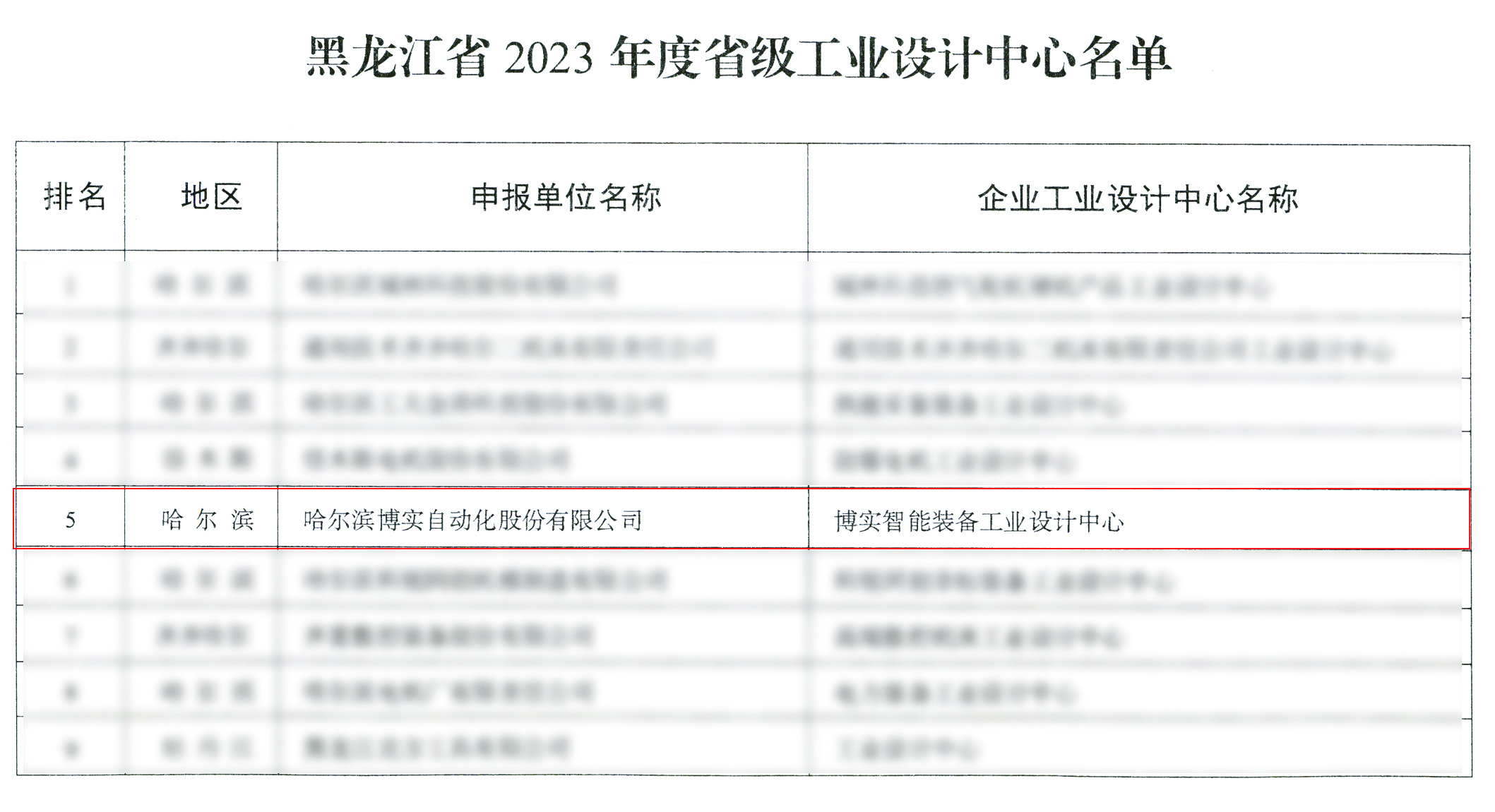 12月21日,黑龍江省工業(yè)和信息化廳公布了2023年度省級工業(yè)設計中心名單,博實智能裝備工業(yè)設計中心獲評“省級工業(yè)設計中心”稱號。