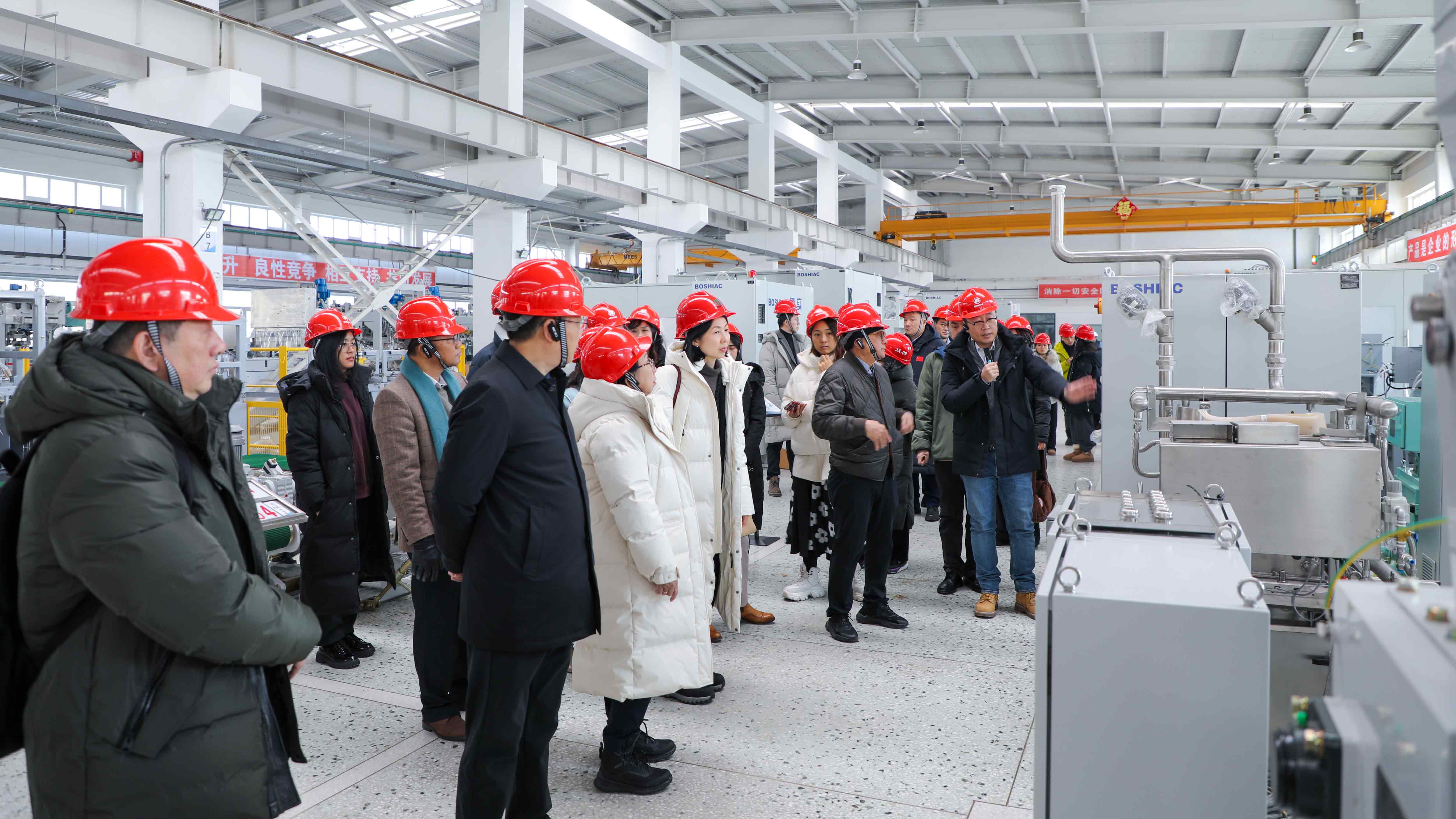 代表團(tuán)參觀了公司展廳和博達(dá)車(chē)間,了解企業(yè)發(fā)展及技術(shù)創(chuàng)新成果情況,零距離感受博實(shí)作為機(jī)器人及智能工廠整體解決方案專家的技術(shù)實(shí)力。