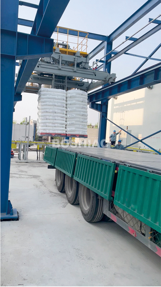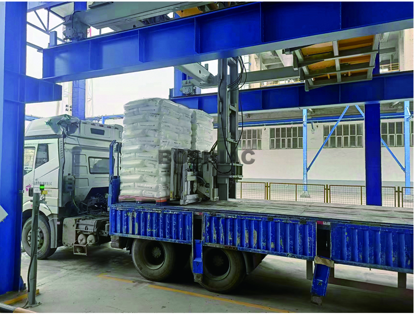 成垛或噸包物料直接進(jìn)行敞篷車(chē)裝載,可選擇帶托盤(pán)運(yùn)輸或不帶托盤(pán)運(yùn)輸,直接對(duì)接包裝碼垛設(shè)備,無(wú)需入庫(kù),直接裝載;也可將庫(kù)房(立體庫(kù)或平面庫(kù))碼垛好的物料進(jìn)行出庫(kù)裝車(chē)。